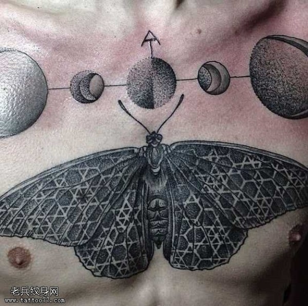 胸部飞蛾纹身图案