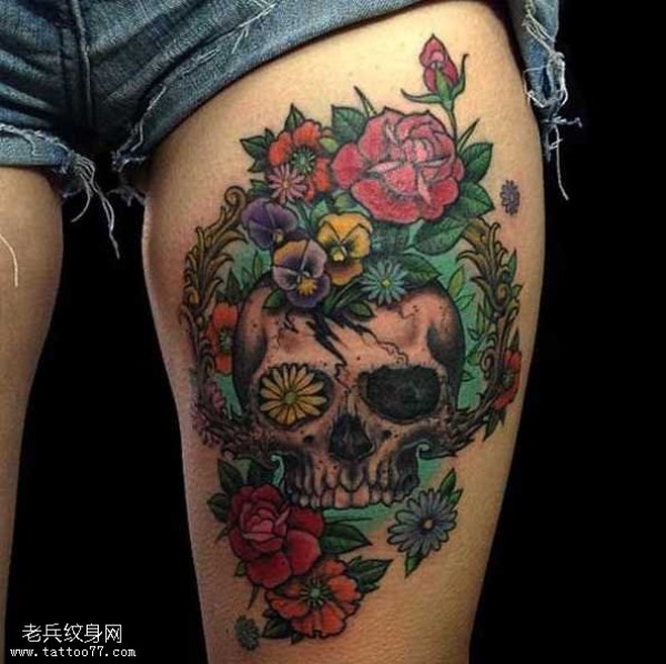 传统花腿纹身--18张传统风格的大花腿纹身图案作品