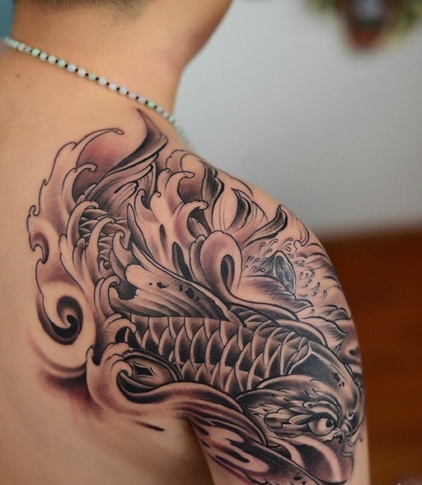 魅力具有诱惑的肩部鲤鱼纹身图案
