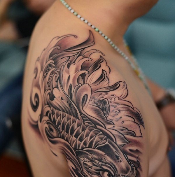 魅力具有诱惑的肩部鲤鱼纹身图案