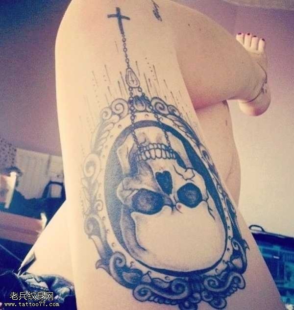腿部时尚骷髅纹身图案