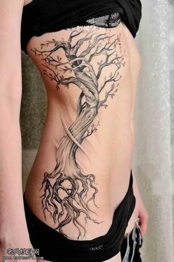 腰部黑树纹身图案