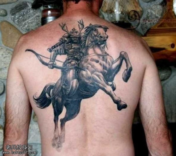 满背帅气武士弓马纹身图案
