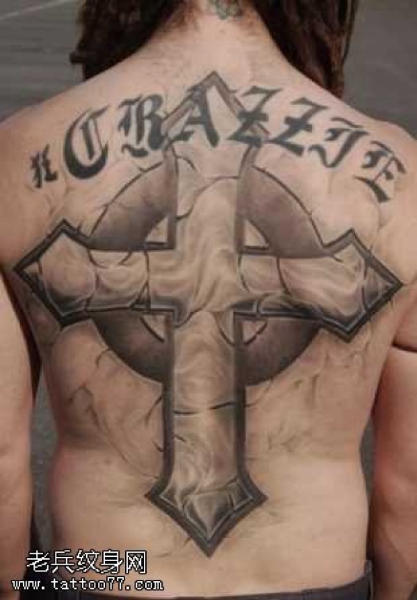 背部经典的十字架英文纹身图案