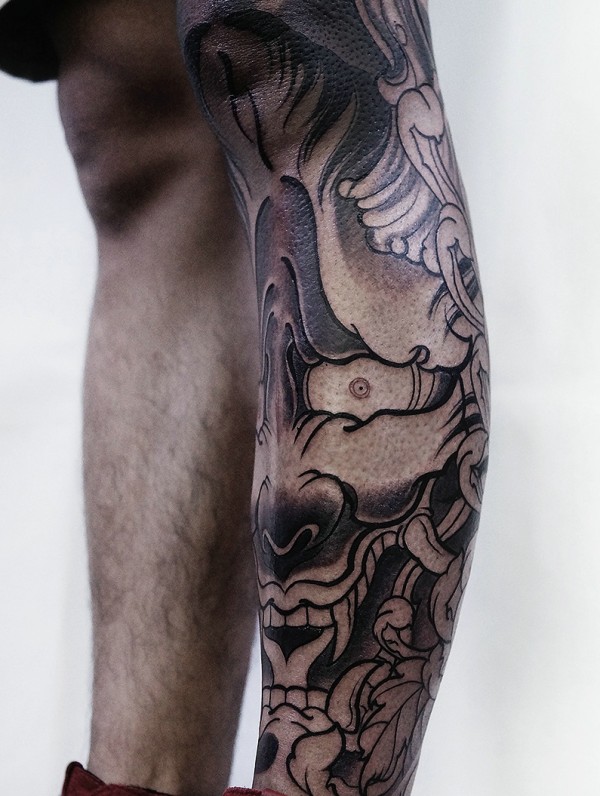 花腿纹身--一组大黑腿纹身图案作品欣赏