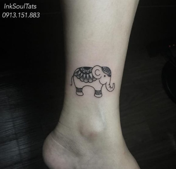 脚踝上的大象图案纹身