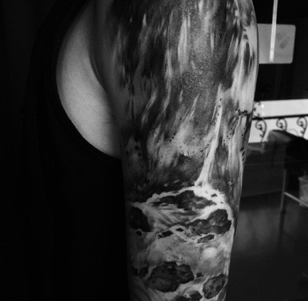 让人着迷的手臂山水图案纹身刺青