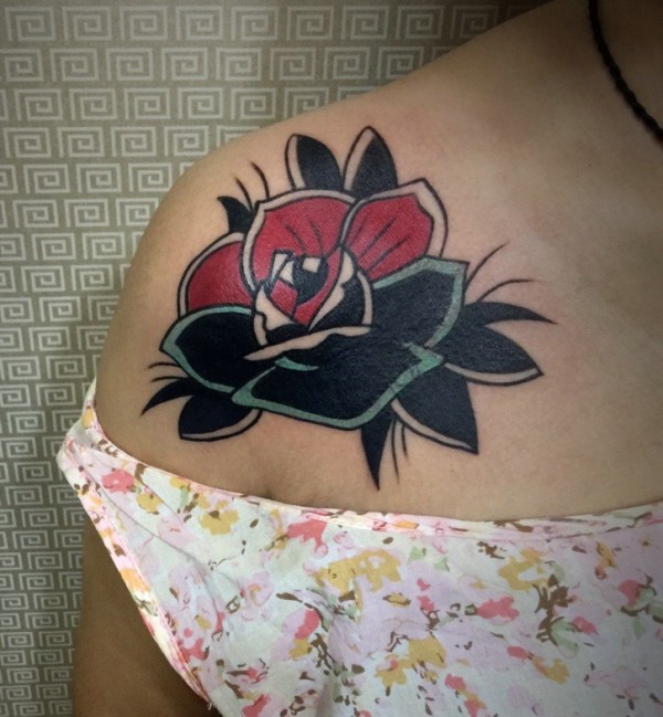 后肩唯美花藤英文图案图片_植物纹身图案大全_纹身图吧