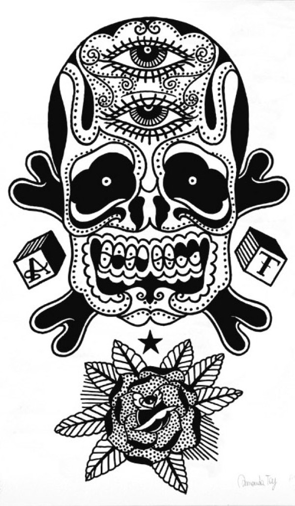 骷髅花创意纹身手稿