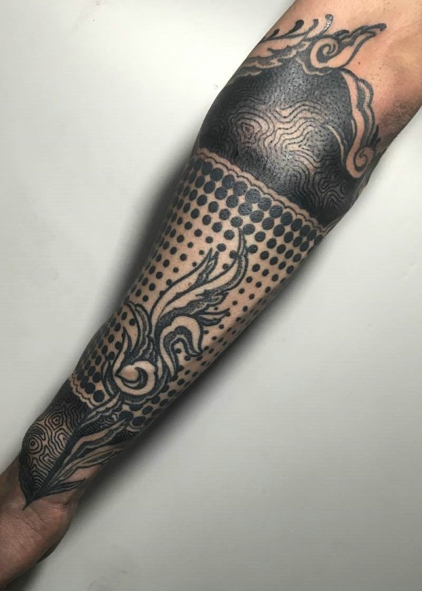 25款男性黑色手臂线条纹身点刺技巧半甲纹身图案