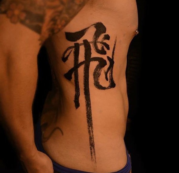 手部侧边的个性中文汉字纹身图案