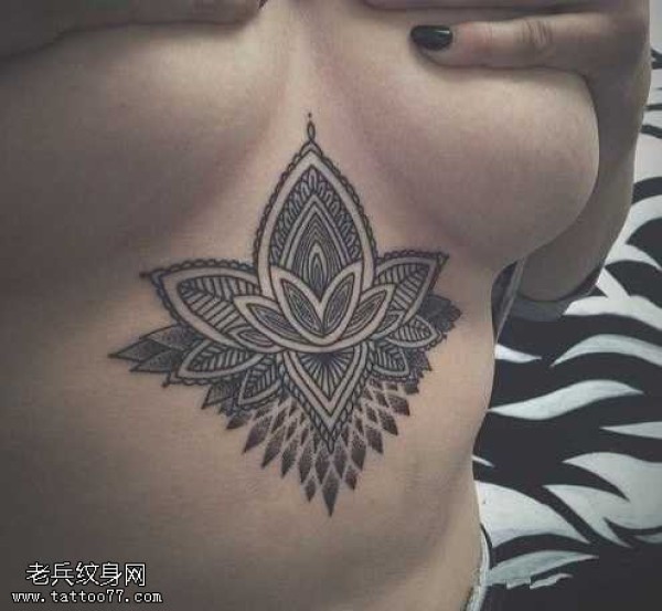 女性腰部莲花花纹刺青_腰部纹身图案大全_纹身图吧