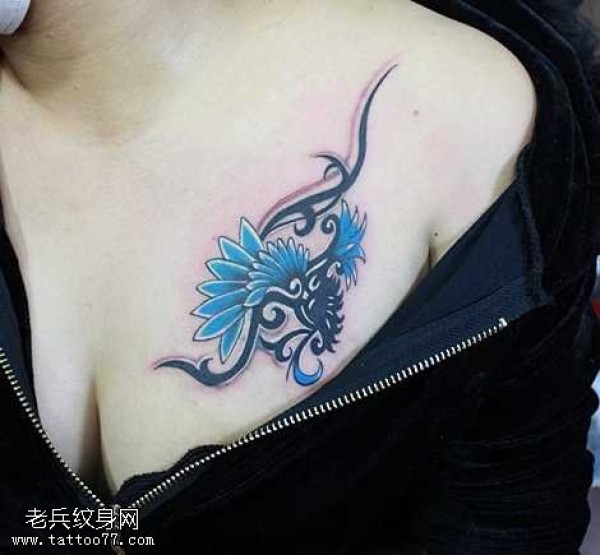 女性大花胸纹身_43张霸气漂亮的女性大花胸纹身图案作品