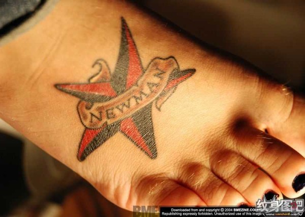 脚背上的红黑色五芒星纹身