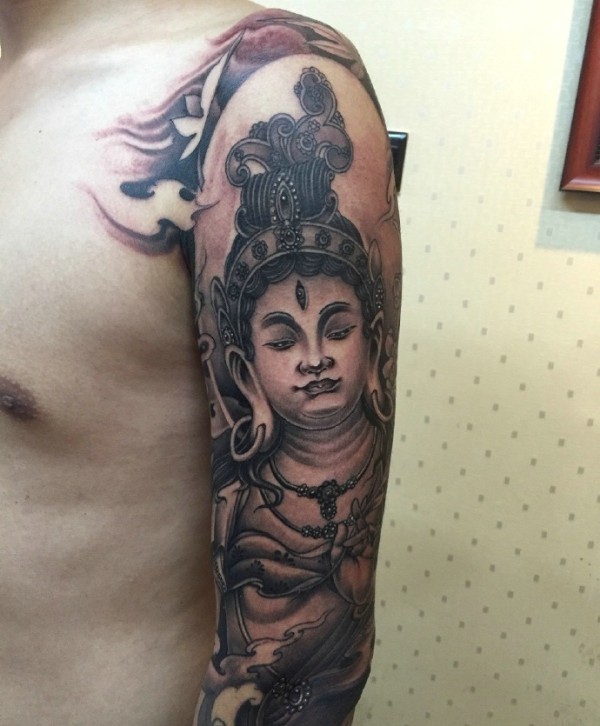 手臂经典佛像纹身图案回头率很高