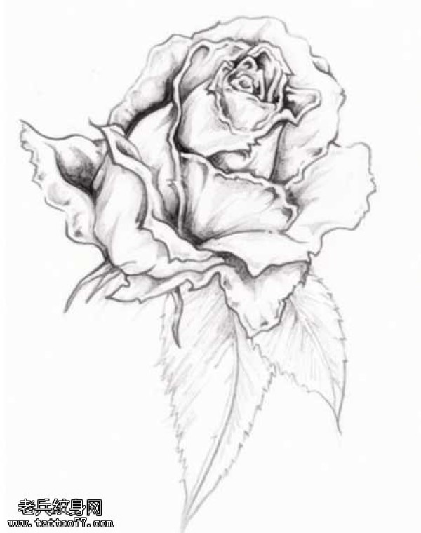 手稿黑灰玫瑰纹身图案