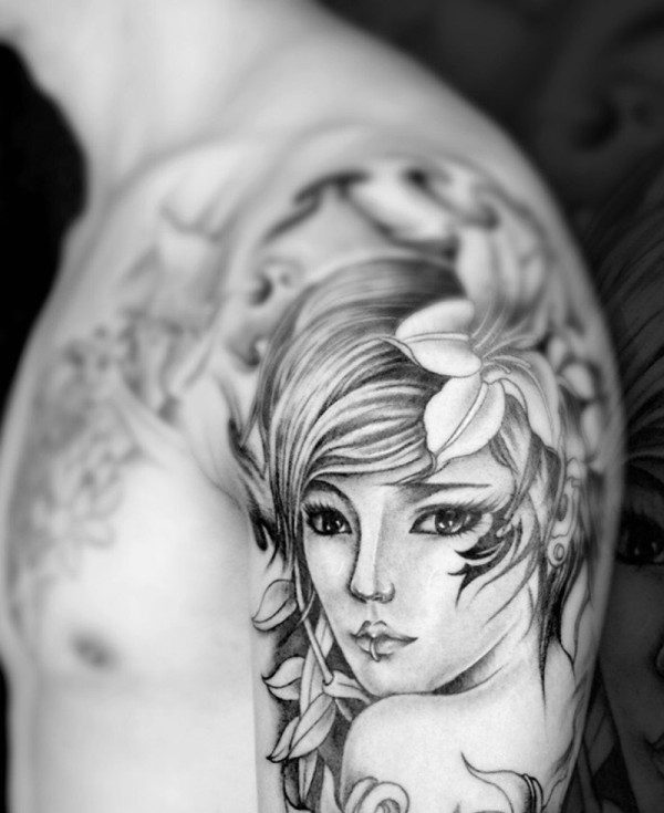手臂一枚动漫美女肖像纹身图案