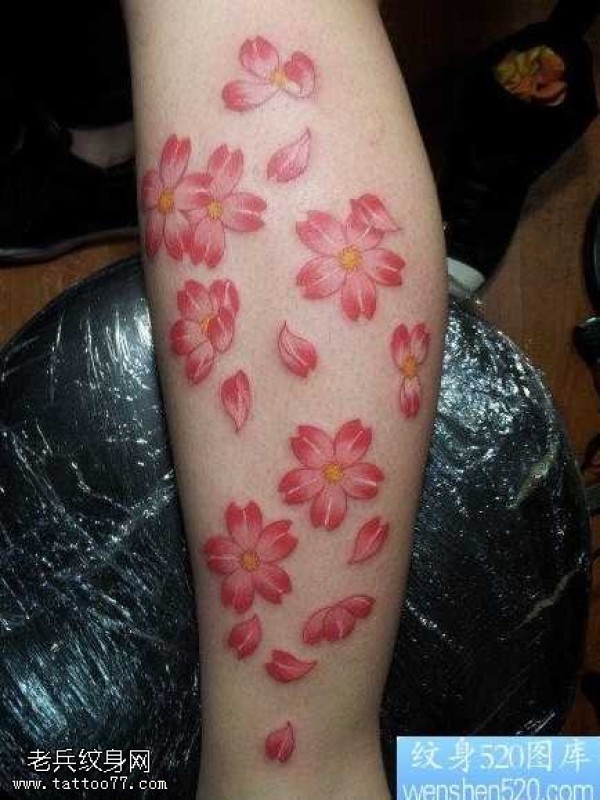 腿部唯美精美的樱花纹身图案