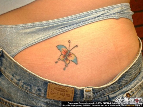 分享一款腰部时尚性感的蝶恋花纹身图案_腰部纹身图案大全_纹身图吧