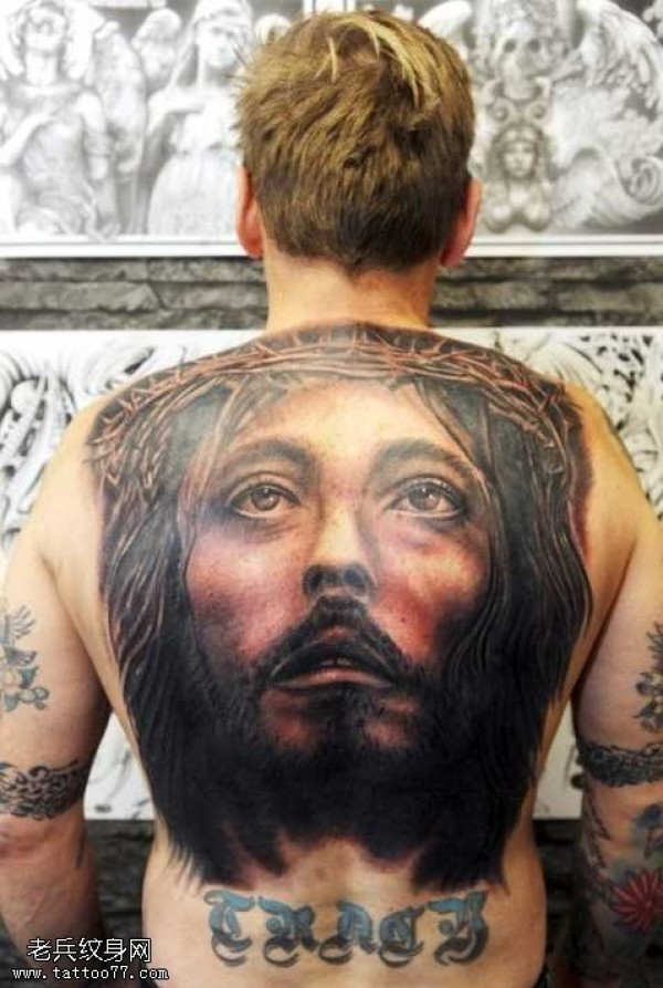 满背耶稣头像纹身图案