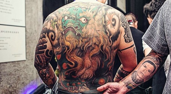 让人抓狂的夸张满背彩色图腾纹身刺青