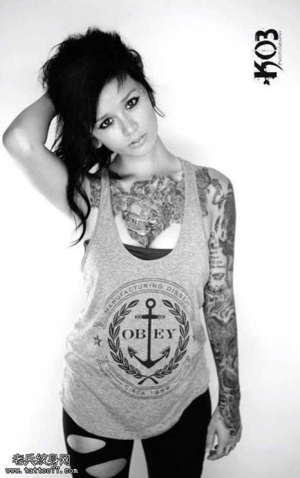 女性大花胸纹身_43张霸气漂亮的女性大花胸纹身图案作品