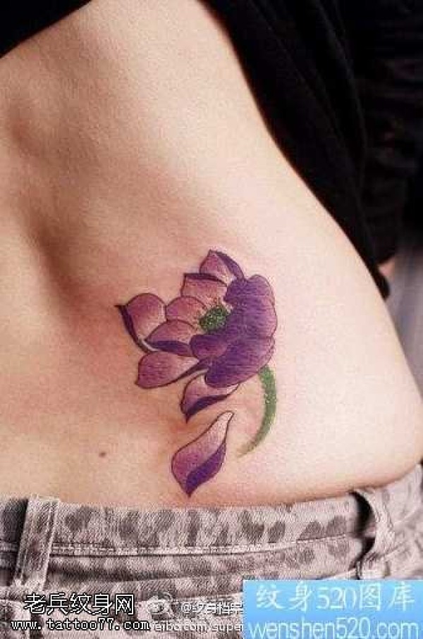 女性腰部莲花花纹刺青_腰部纹身图案大全_纹身图吧
