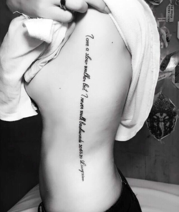 女生后腰纹身黑白灰风格抽象线条纹身图案