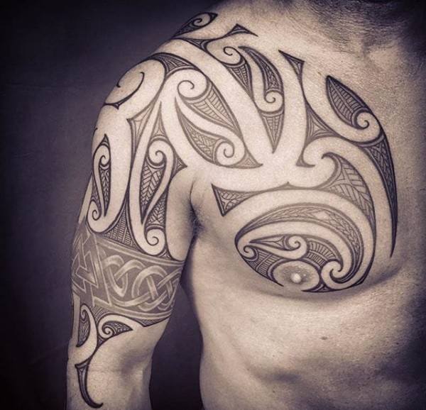 欧美花臂纹身_22张霸气黑灰欧美大黑花臂纹身图案作品图片