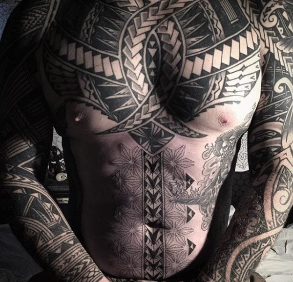 欧美花臂纹身_22张霸气黑灰欧美大黑花臂纹身图案作品图片