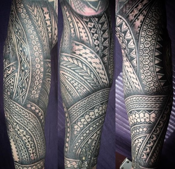 欧美花臂纹身_22张霸气黑灰欧美大黑花臂纹身图案作品图片