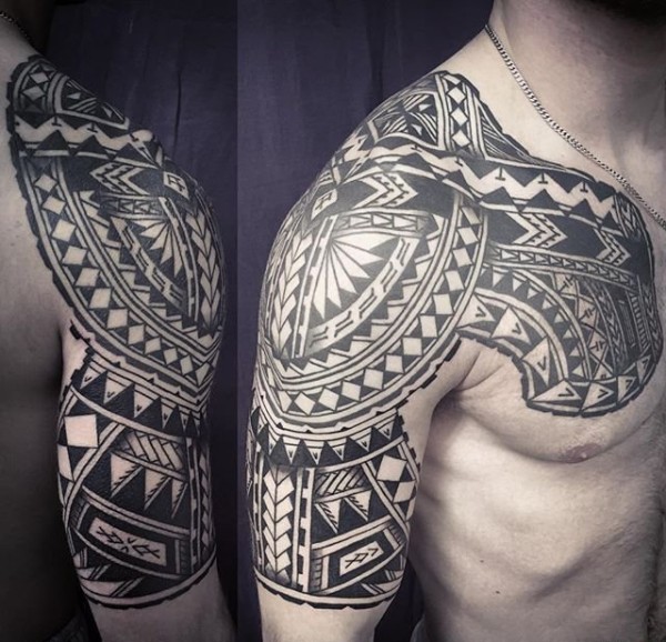 欧美花臂纹身_22张霸气黑灰欧美大黑花臂纹身图案作品图片