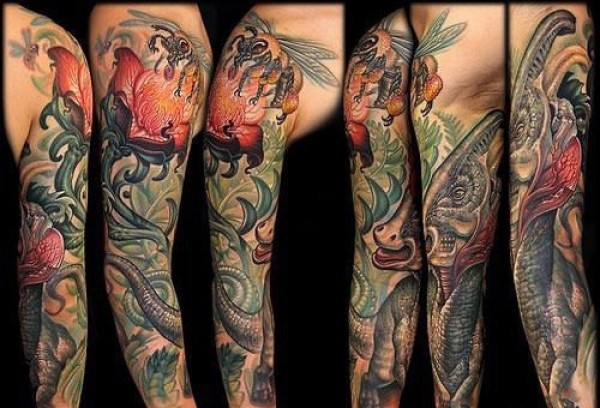 手臂莲花蛇纹身图案_臂部纹身图案大全_纹身图吧