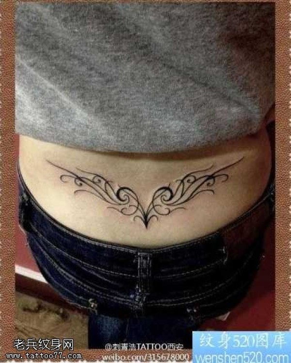 唯美美女腰部图腾腰花纹身图案