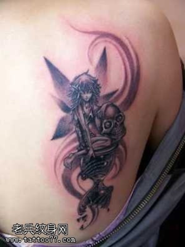 女生肩花纹身_15张女性双肩对称的肩花纹身图案作品图片