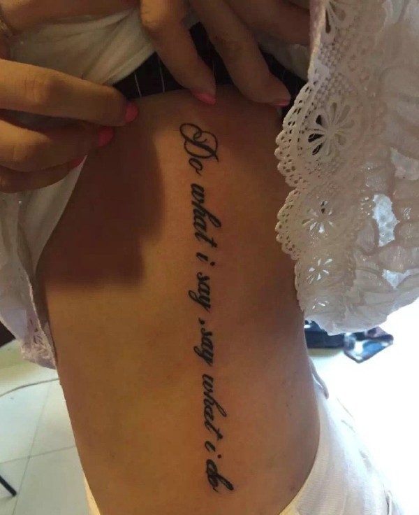 女生后腰纹身黑白灰风格抽象线条纹身图案