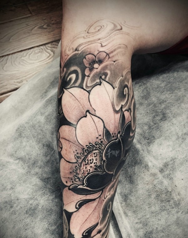 传统鲤鱼花小腿纹身_腿部纹身图案大全_纹身图吧
