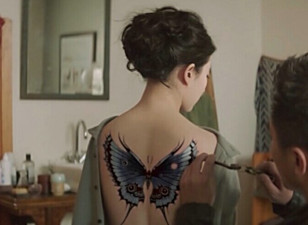 高贵女神后背一只优雅的蝴蝶纹身图案