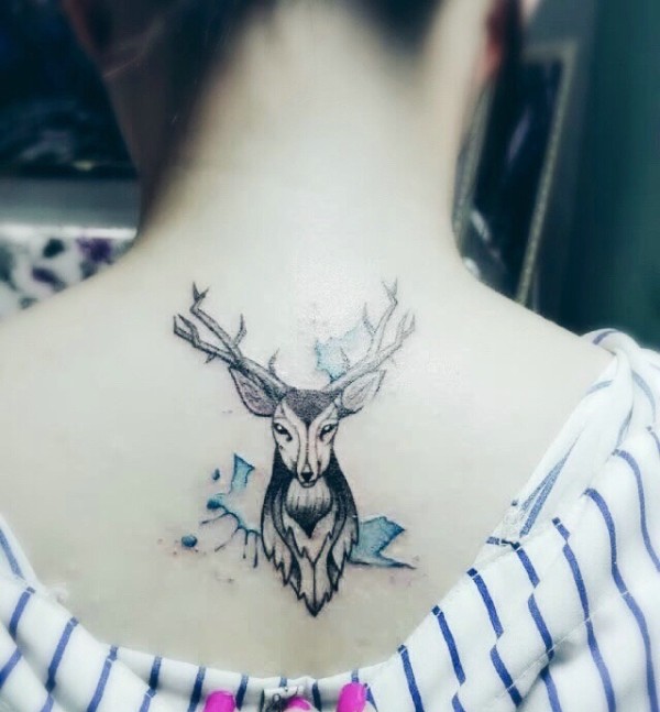 可爱动人的脊椎部小鹿纹身图案