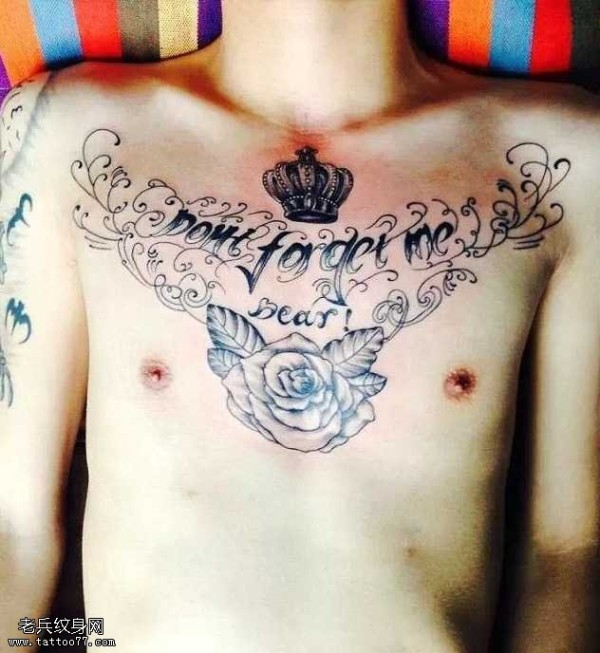 胸部大气的皇冠英文纹身图案