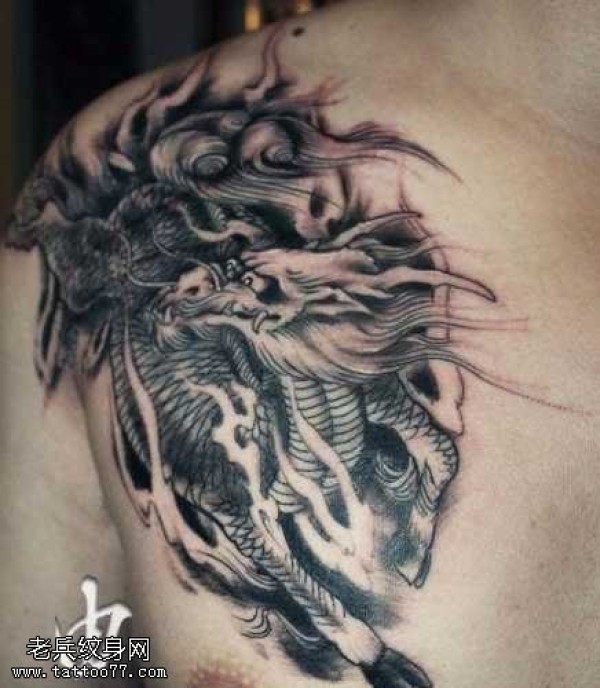 龙纹身手稿_一组老传统黑灰龙手稿纹身图案