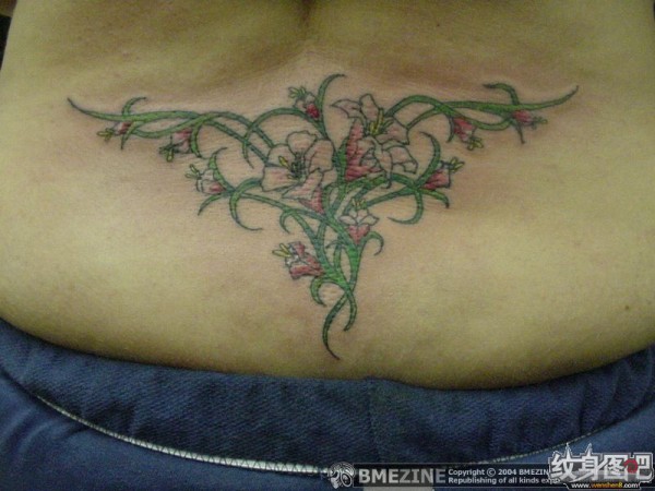 女生玲珑腰部的依兰花图案纹身女生腰部嫣红底_腰部纹身图案大全_纹身图吧