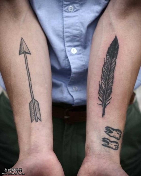 手臂箭羽毛纹身图案