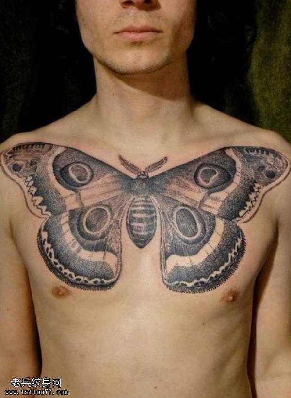胸部飞蛾纹身图案