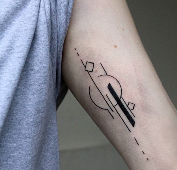 黑色线条组成的一只破碎的玻璃瓶图案纹身