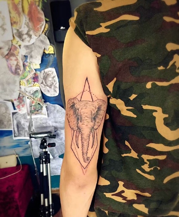 男士手臂外侧个性小象纹身图案