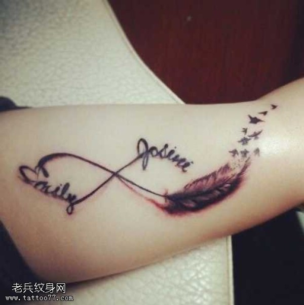 手臂唯美的羽毛纹身图案
