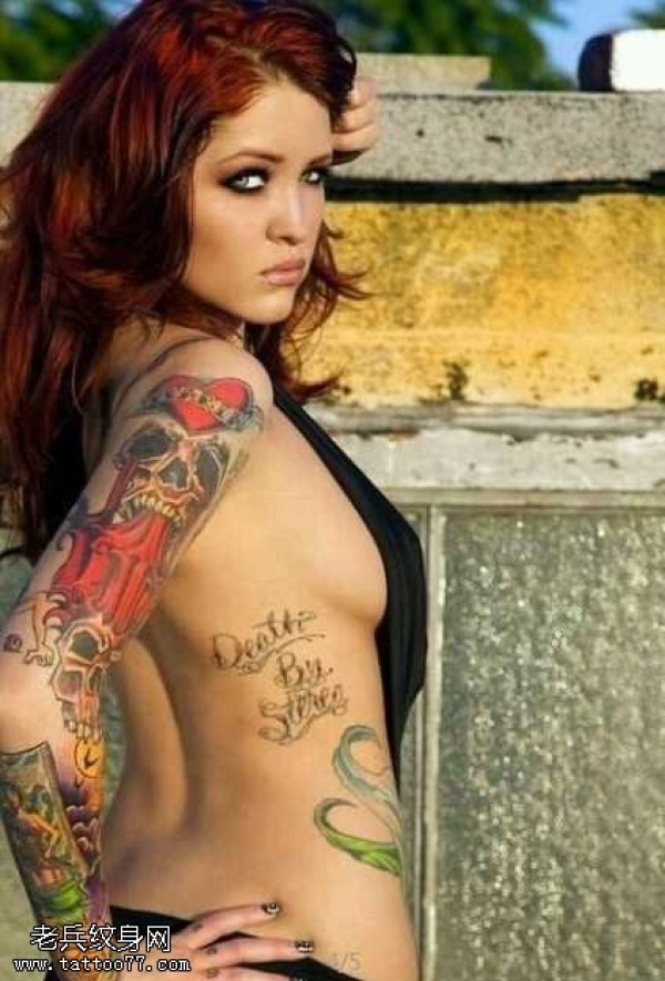 侧腰女骷髅刺青图案图片_骷髅纹身图案大全_纹身图吧