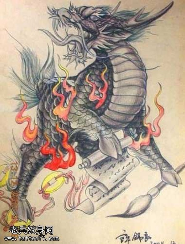 龙纹身手稿_一组老传统黑灰龙手稿纹身图案