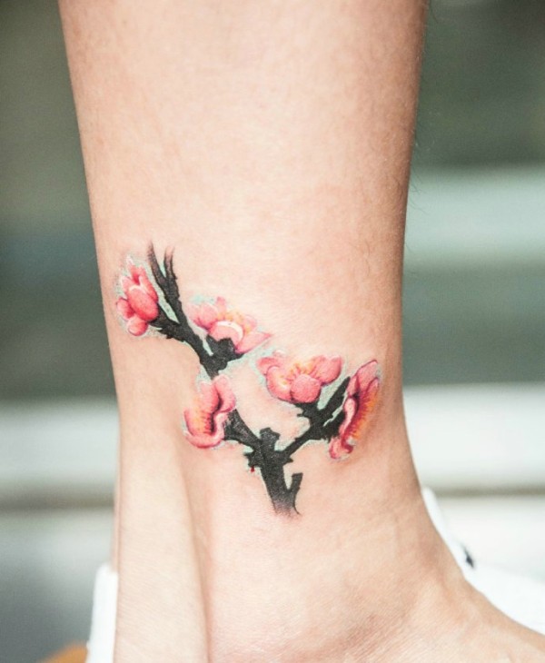 清新小桃花脚踝纹身_脚部纹身图案大全_纹身图吧